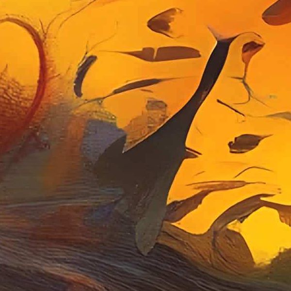 制作者と AI (AI アート作成用のプログラム Stable Diffusion XL 1.0 (1024)) とからなるアートユニット カナブストラクド によるアート画像です.そのプログラムに「Kanabstracd surrealism Chagall」ということば (prompt) をあたえて創造させました. 負のプロンプトとして「Chagall simplicity」を指定しています.