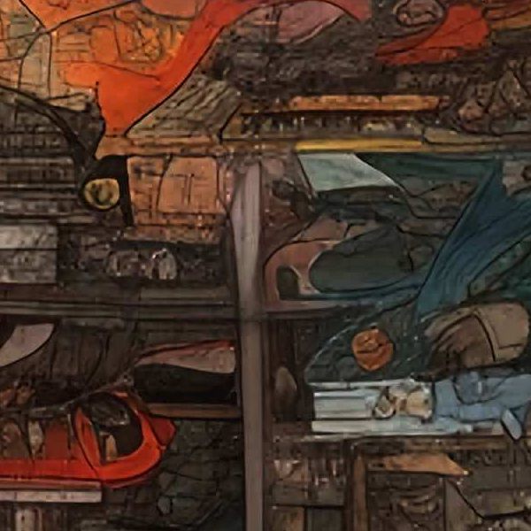 これらの画像は通常の AI アートとはちがう独自の方法を使って作っています. AI アートは AI にプロンプト (または呪文) とよばれる英語の記述をあたえて作画した画像ですが, Stable Diffusion,DALL・E 2,Midjourney などの AI プログラムによって 2022 年に爆発的に普及しました. AI アートで望む画像を作るために通常は比較的細かい指示を与えます. しかしデイシンではおもに 1〜4 語程度の短いことばや造語を Stable Diffusion XL 1.0 (1024) を使用している OpenArt,NightCafe などのウェブサイトで使用して,そのプログラムがもつ知識をいかして自由に (ジェネラティブに,創発的に) 画像をつくらせています. コントラストの調整等はしていますが,描きなおさせたり加筆したりするようなことはしていません.