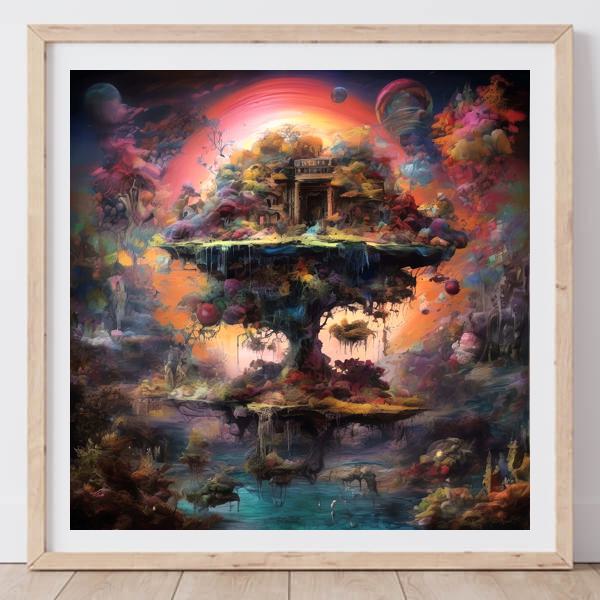 In AI art, the images generated are usually quite rough—about the size of an A6 print (roughly 500–1000 pixels on each side). To make them suitable for presentation, I use a technique called super-resolution, which increases the resolution 4–8 times higher than the original, adding finer detail. However, please note that the resolution of the product image shown above is about the same as the original and has not been upscaled.