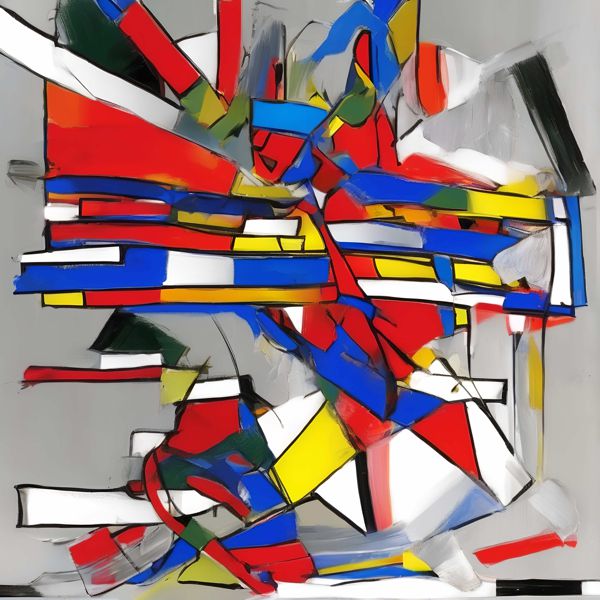 制作者と AI (AI アート作成用のプログラム Stable Diffusion XL 1.0 (1024)) とからなるアートユニット カナブストラクド によるアート画像です.そのプログラムに「Kanabstracd surreal Mondrian」ということば (prompt) をあたえて創造させました. 負のプロンプトとして「Mondrian grid」を指定しています.