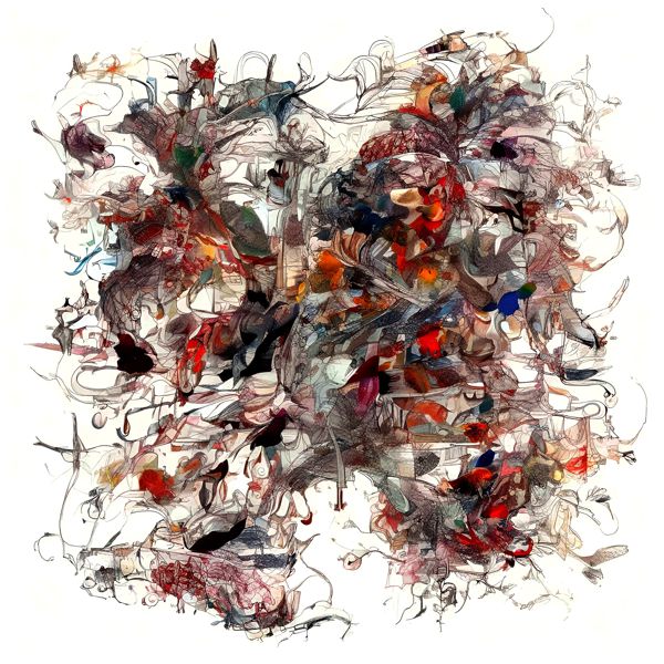 これらの画像は通常の AI アートとはちがう独自の方法を使って作っています. AI アートは AI にプロンプト (または呪文) とよばれる英語の記述をあたえて作画した画像ですが, Stable Diffusion,DALL・E 2,Midjourney などの AI プログラムによって 2022 年に爆発的に普及しました. AI アートで望む画像を作るために通常は比較的細かい指示を与えます. しかしデイシンではおもに 1〜4 語程度の短いことばや造語を Stable Diffusion XL 1.0 (1024) を使用している OpenArt,NightCafe などのウェブサイトで使用して,そのプログラムがもつ知識をいかして自由に (ジェネラティブに,創発的に) 画像をつくらせています. コントラストの調整等はしていますが,描きなおさせたり加筆したりするようなことはしていません.