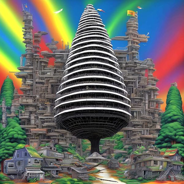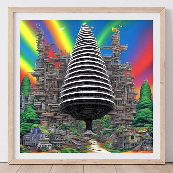 AI Artwork: Kanabstracd “Hundertwasser-esque Absurd Realism without Circles”