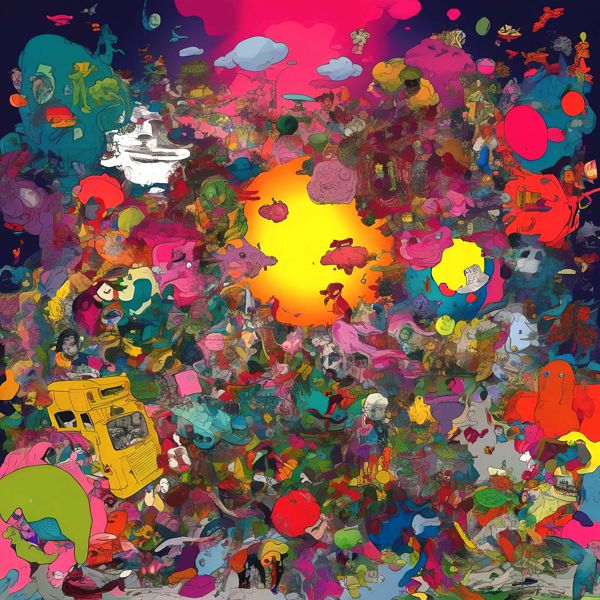 制作者と AI (AI アート作成用のプログラム Stable Diffusion XL 1.0 (1024)) とからなるアートユニット カナブストラクド によるアート画像です.そのプログラムに「Kanabstracd absurdism Tezuka_Osamu」ということば (prompt) をあたえて創造させました. 負のプロンプトとして「Tezuka_Osamu Fletching」を指定しています.