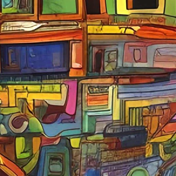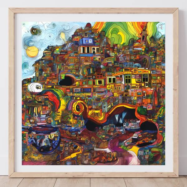 AI Artwork: Kanabstracd “Hundertwasser-esque Absurd Realism without Arrows”