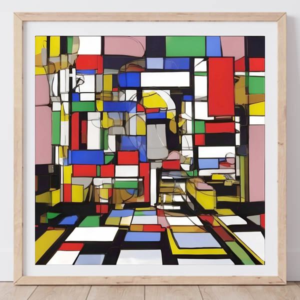 AIアート: カナブストラクド「モンドリアン的格子 (grid) なき超現実」 Kanabstracd