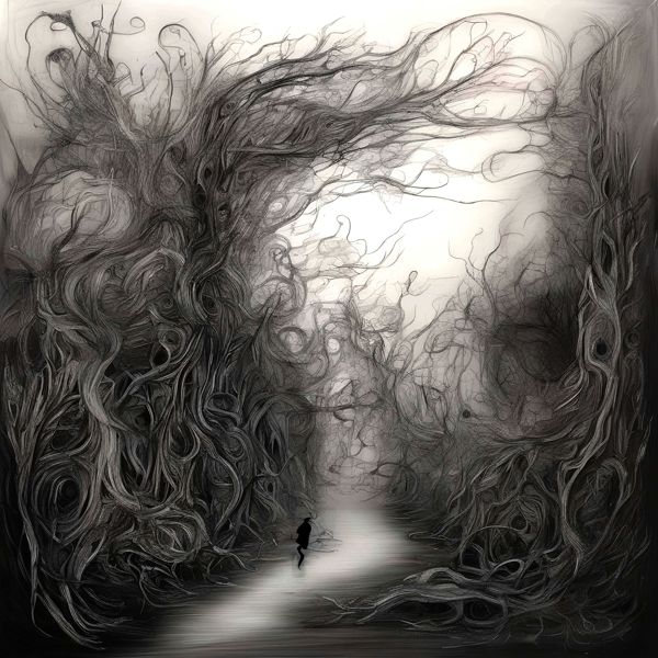 これらの画像は通常の AI アートとはちがう独自の方法を使って作っています. AI アートは AI にプロンプト (または呪文) とよばれる英語の記述をあたえて作画した画像ですが, Stable Diffusion,DALL・E 2,Midjourney などの AI プログラムによって 2022 年に爆発的に普及しました. AI アートで望む画像を作るために通常は比較的細かい指示を与えます. しかしデイシンではおもに 1〜4 語程度の短いことばや造語を Stable Diffusion XL 1.0 (1024) を使用している OpenArt,NightCafe などのウェブサイトで使用して,そのプログラムがもつ知識をいかして自由に (ジェネラティブに,創発的に) 画像をつくらせています. コントラストの調整等はしていますが,描きなおさせたり加筆したりするようなことはしていません.