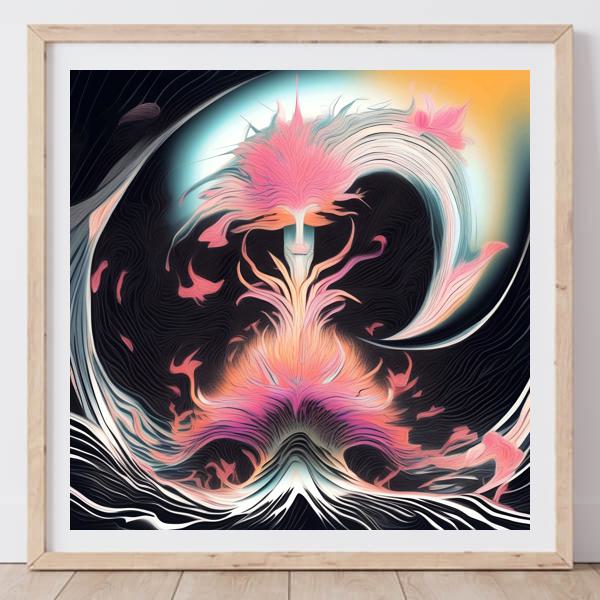 In AI art, the images generated are usually quite rough—about the size of an A6 print (roughly 500–1000 pixels on each side). To make them suitable for presentation, I use a technique called super-resolution, which increases the resolution 4–8 times higher than the original, adding finer detail. However, please note that the resolution of the product image shown above is about the same as the original and has not been upscaled.