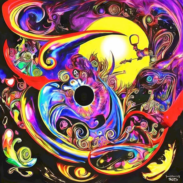 これらの画像は通常の AI アートとはちがう独自の方法を使って作っています. AI アートは AI にプロンプト (または呪文) とよばれる英語の記述をあたえて作画した画像ですが, Stable Diffusion,DALL・E 2,Midjourney などの AI プログラムによって 2022 年に爆発的に普及しました. AI アートで望む画像を作るために通常は比較的細かい指示を与えます. しかしデイシンではおもに 1〜4 語程度の短いことばや造語を Stable Diffusion XL 1.0 (1024) を使用している OpenArt,NightCafe などのウェブサイトで使用して,そのプログラムがもつ知識をいかして自由に (ジェネラティブに,創発的に) 画像をつくらせています. コントラストの調整等はしていますが,描きなおさせたり加筆したりするようなことはしていません.