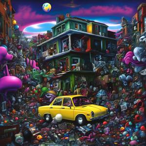 創作者と AI とで構成されるアートユニット「カナブストラクド (Kanabstracd)」による,矢に影響されない作品をあつめました.つまり,抽象画を中心に描くカナブストラクド (Kanabstracd) というつづりを正のプロンプトにし,“arrows”を負のプロンプトにいれて描いています.カナブストラクドという名前をプロンプトとすることは署名のような意味をもちます.AI には著作権がないため,創作者が選んだ上位の作品は創作者の著作権つきのものとかんがえています.