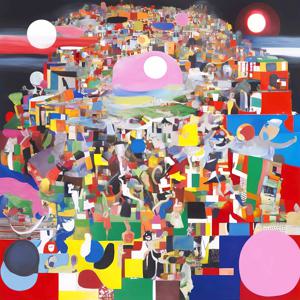 創作者と AI とで構成されるアートユニット「カナブストラクド (Kanabstracd)」による,矢に影響されない作品をあつめました.つまり,抽象画を中心に描くカナブストラクド (Kanabstracd) というつづりを正のプロンプトにし,“arrows”を負のプロンプトにいれて描いています.カナブストラクドという名前をプロンプトとすることは署名のような意味をもちます.AI には著作権がないため,創作者が選んだ上位の作品は創作者の著作権つきのものとかんがえています.