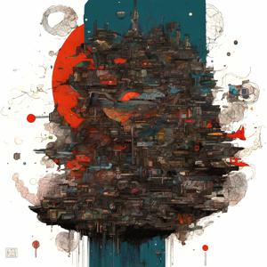創作者と AI とで構成されるアートユニット「カナブストラクド (Kanabstracd)」による,市松模様に影響されない作品をあつめました.つまり,抽象画を中心に描くカナブストラクド (Kanabstracd) というつづりを正のプロンプトにし,“checker”を負のプロンプトにいれて描いています.カナブストラクドという名前をプロンプトとすることは署名のような意味をもちます.AI には著作権がないため,創作者が選んだ上位の作品は創作者の著作権つきのものとかんがえています.