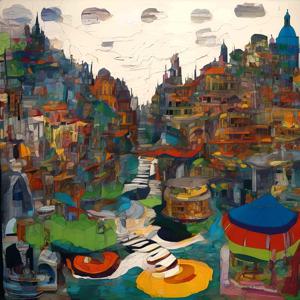 AI artwork Kanabstracd “Hundertwasser-esque ±Absurdism without Knots”
