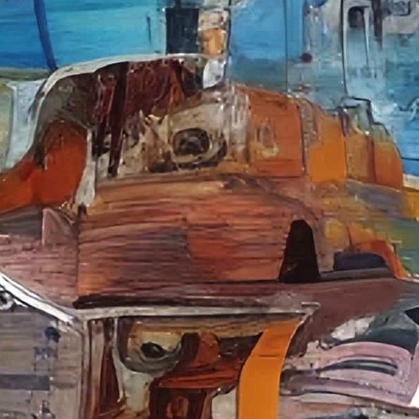 写実の風景画のように遠近や輪郭がはっきりする絵とはちがい,この作品は境界をあいまいにして,見る人の想像に委ねます. 幾何学的に整った抽象画とも異なり,きっちりした規則より,即興のリズムを大切にしているようです. 同じ場所を何度も塗り重ねた気配があり,眺めるたびに顔や道が浮かび,物語が少しずつ変わっていくのです.