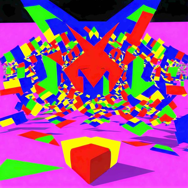 これらの画像は通常の AI アートとはちがう独自の方法を使って作っています. AI アートは AI にプロンプト (または呪文) とよばれる英語の記述をあたえて作画した画像ですが, Stable Diffusion,DALL・E 2,Midjourney などの AI プログラムによって 2022 年に爆発的に普及しました. AI アートで望む画像を作るために通常は比較的細かい指示を与えます. しかしデイシンではおもに 1〜4 語程度の短いことばや造語を Stable Diffusion XL 1.0 (1024) を使用している OpenArt,NightCafe などのウェブサイトで使用して,そのプログラムがもつ知識をいかして自由に (ジェネラティブに,創発的に) 画像をつくらせています. コントラストの調整等はしていますが,描きなおさせたり加筆したりするようなことはしていません.