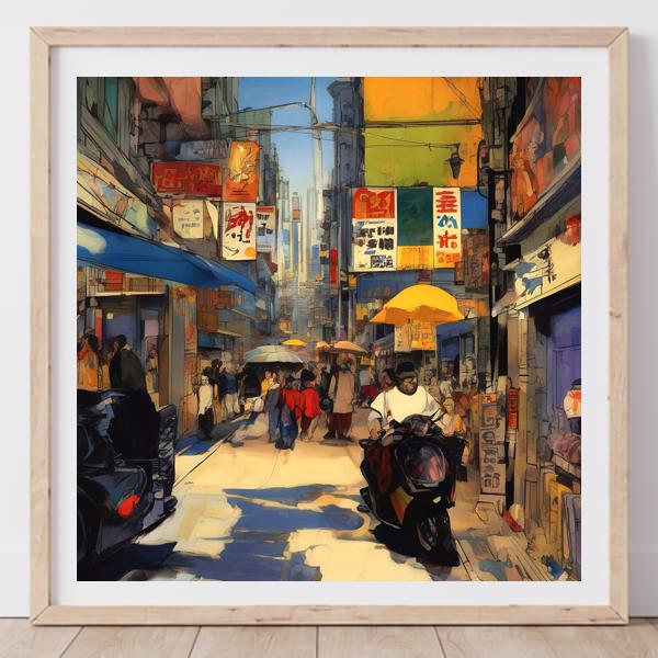 In AI art, the images generated are usually quite rough—about the size of an A6 print (roughly 500–1000 pixels on each side). To make them suitable for presentation, I use a technique called super-resolution, which increases the resolution 4–8 times higher than the original, adding finer detail. However, please note that the resolution of the product image shown above is about the same as the original and has not been upscaled.