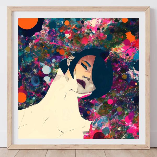 In AI art, the images generated are usually quite rough—about the size of an A6 print (roughly 500–1000 pixels on each side). To make them suitable for presentation, I use a technique called super-resolution, which increases the resolution 4–8 times higher than the original, adding finer detail. However, please note that the resolution of the product image shown above is about the same as the original and has not been upscaled.