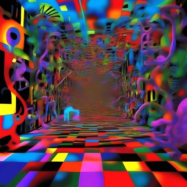 これらの画像は通常の AI アートとはちがう独自の方法を使って作っています. AI アートは AI にプロンプト (または呪文) とよばれる英語の記述をあたえて作画した画像ですが, Stable Diffusion,DALL・E 2,Midjourney などの AI プログラムによって 2022 年に爆発的に普及しました. AI アートで望む画像を作るために通常は比較的細かい指示を与えます. しかしデイシンではおもに 1〜4 語程度の短いことばや造語を Stable Diffusion XL 1.0 (1024) を使用している OpenArt,NightCafe などのウェブサイトで使用して,そのプログラムがもつ知識をいかして自由に (ジェネラティブに,創発的に) 画像をつくらせています. コントラストの調整等はしていますが,描きなおさせたり加筆したりするようなことはしていません.