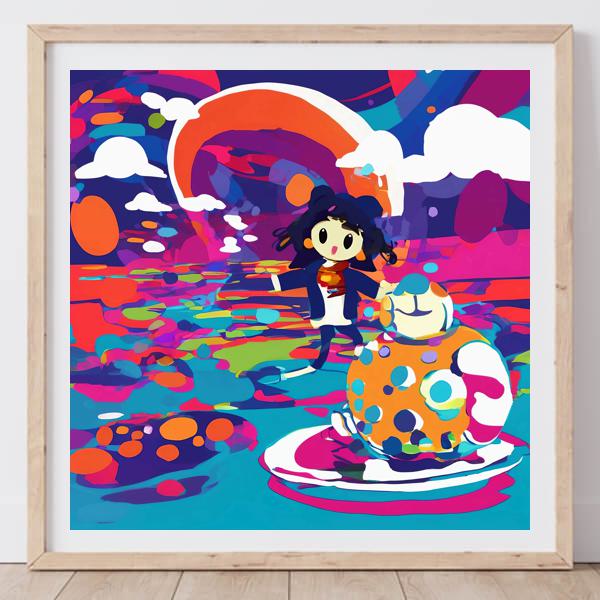 In AI art, the images generated are usually quite rough—about the size of an A6 print (roughly 500–1000 pixels on each side). To make them suitable for presentation, I use a technique called super-resolution, which increases the resolution 4–8 times higher than the original, adding finer detail. However, please note that the resolution of the product image shown above is about the same as the original and has not been upscaled.