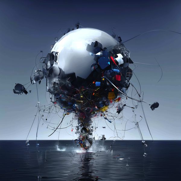 これらの画像は通常の AI アートとはちがう独自の方法を使って作っています. AI アートは AI にプロンプト (または呪文) とよばれる英語の記述をあたえて作画した画像ですが, Stable Diffusion,DALL・E 2,Midjourney などの AI プログラムによって 2022 年に爆発的に普及しました. AI アートで望む画像を作るために通常は比較的細かい指示を与えます. しかしデイシンではおもに 1〜4 語程度の短いことばや造語を Stable Diffusion XL 1.0 (1024) を使用している OpenArt,NightCafe などのウェブサイトで使用して,そのプログラムがもつ知識をいかして自由に (ジェネラティブに,創発的に) 画像をつくらせています. コントラストの調整等はしていますが,描きなおさせたり加筆したりするようなことはしていません.