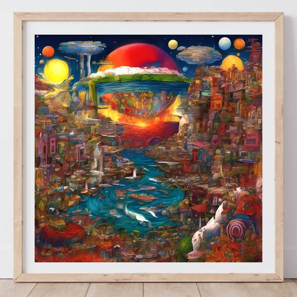 In AI art, the images generated are usually quite rough—about the size of an A6 print (roughly 500–1000 pixels on each side). To make them suitable for presentation, I use a technique called super-resolution, which increases the resolution 4–8 times higher than the original, adding finer detail. However, please note that the resolution of the product image shown above is about the same as the original and has not been upscaled.