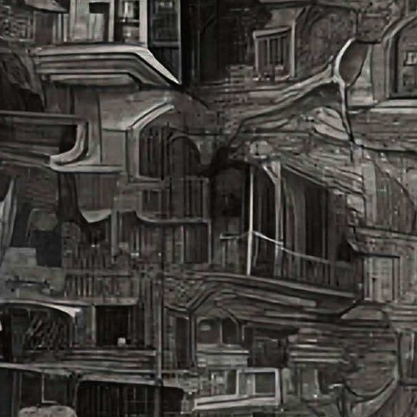 これらの画像は通常の AI アートとはちがう独自の方法を使って作っています. AI アートは AI にプロンプト (または呪文) とよばれる英語の記述をあたえて作画した画像ですが, Stable Diffusion,DALL・E 2,Midjourney などの AI プログラムによって 2022 年に爆発的に普及しました. AI アートで望む画像を作るために通常は比較的細かい指示を与えます. しかしデイシンではおもに 1〜4 語程度の短いことばや造語を Stable Diffusion XL 1.0 (1024) を使用している OpenArt,NightCafe などのウェブサイトで使用して,そのプログラムがもつ知識をいかして自由に (ジェネラティブに,創発的に) 画像をつくらせています. コントラストの調整等はしていますが,描きなおさせたり加筆したりするようなことはしていません.
