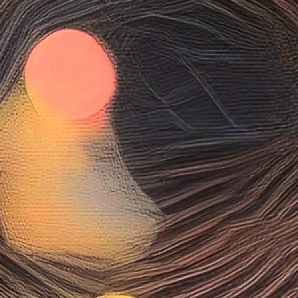 AI アートでは通常 A6 サイズ相当くらい (縦横 500〜1000 ピクセルくらい) の荒い画像しかつくれないので,超解像という技術をつかって原画より解像度を 4〜8 倍に (こまかく) しています. ただし,上の商品画像の解像度は原画以下なのでご注意ください.
