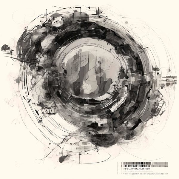 制作者と AI (AI アート作成用のプログラム Stable Diffusion XL 1.0 (1024)) とからなるアートユニット カナブストラクド によるアート画像です.そのプログラムに「Kanabstracd graphic_score」ということば (prompt) をあたえて創造させました. 負のプロンプトとして「graphic_score Fletching」を指定しています.