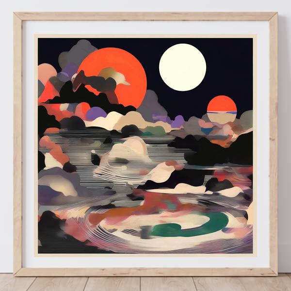 In AI art, the images generated are usually quite rough—about the size of an A6 print (roughly 500–1000 pixels on each side). To make them suitable for presentation, I use a technique called super-resolution, which increases the resolution 4–8 times higher than the original, adding finer detail. However, please note that the resolution of the product image shown above is about the same as the original and has not been upscaled.