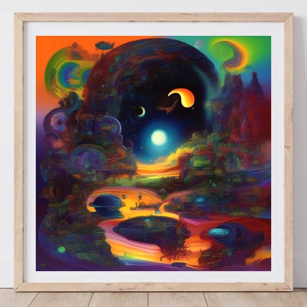 In AI art, the images generated are usually quite rough—about the size of an A6 print (roughly 500–1000 pixels on each side). To make them suitable for presentation, I use a technique called super-resolution, which increases the resolution 4–8 times higher than the original, adding finer detail. However, please note that the resolution of the product image shown above is about the same as the original and has not been upscaled.