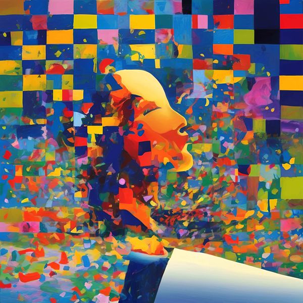 制作者と AI (AI アート作成用のプログラム Stable Diffusion XL 1.0 (1024)) とからなるアートユニット カナブストラクド によるアート画像です.そのプログラムに「Kanabstracd surrealism Seurat」ということば (prompt) をあたえて創造させました. 負のプロンプトとして「Seurat woodgrain」を指定しています.