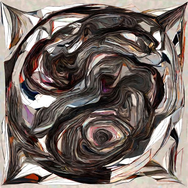 これらの画像は通常の AI アートとはちがう独自の方法を使って作っています. AI アートは AI にプロンプト (または呪文) とよばれる英語の記述をあたえて作画した画像ですが, Stable Diffusion,DALL・E 2,Midjourney などの AI プログラムによって 2022 年に爆発的に普及しました. AI アートで望む画像を作るために通常は比較的細かい指示を与えます. しかしデイシンではおもに 1〜4 語程度の短いことばや造語を Stable Diffusion XL 1.0 (1024) を使用している OpenArt,NightCafe などのウェブサイトで使用して,そのプログラムがもつ知識をいかして自由に (ジェネラティブに,創発的に) 画像をつくらせています. コントラストの調整等はしていますが,描きなおさせたり加筆したりするようなことはしていません.