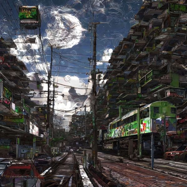 これらの画像は通常の AI アートとはちがう独自の方法を使って作っています. AI アートは AI にプロンプト (または呪文) とよばれる英語の記述をあたえて作画した画像ですが, Stable Diffusion,DALL・E 2,Midjourney などの AI プログラムによって 2022 年に爆発的に普及しました. AI アートで望む画像を作るために通常は比較的細かい指示を与えます. しかしデイシンではおもに 1〜4 語程度の短いことばや造語を Stable Diffusion XL 1.0 (1024) を使用している OpenArt,NightCafe などのウェブサイトで使用して,そのプログラムがもつ知識をいかして自由に (ジェネラティブに,創発的に) 画像をつくらせています. コントラストの調整等はしていますが,描きなおさせたり加筆したりするようなことはしていません.