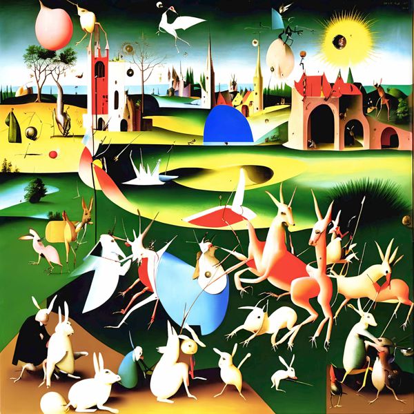 This image was created by ‘Kanabstracd,’ an art unit formed by the creator and the AI (Stable Diffusion XL 1.0 (1024), a program for creating AI artworks). I gave the program the word ‘Kanabstracd Hieronymus_Bosch’ as a prompt and let it create. Also “absurdism ” was used as the negative prompt.