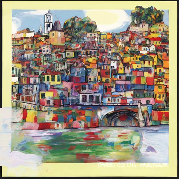制作者と AI (AI アート作成用のプログラム Stable Diffusion XL 1.0 (1024)) とからなるアートユニット カナブストラクド によるアート画像です.そのプログラムに「Kanabstracd Hundertwasser」ということば (prompt) をあたえて創造させました. 負のプロンプトとして「Hundertwasser woodgrain」を指定しています.
