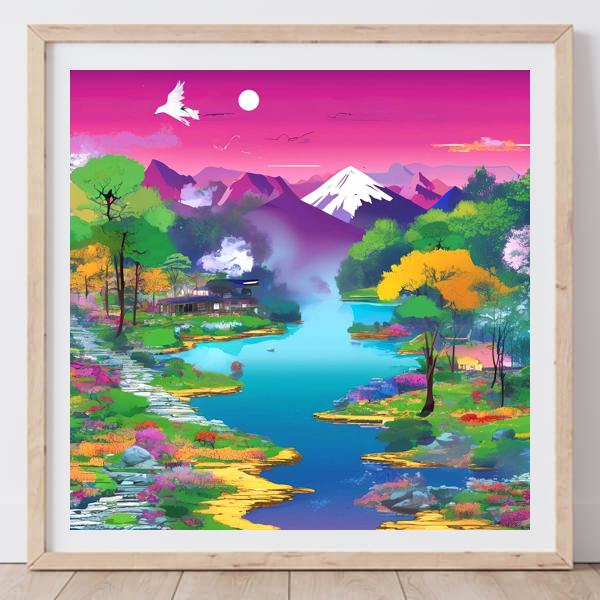 In AI art, the images generated are usually quite rough—about the size of an A6 print (roughly 500–1000 pixels on each side). To make them suitable for presentation, I use a technique called super-resolution, which increases the resolution 4–8 times higher than the original, adding finer detail. However, please note that the resolution of the product image shown above is about the same as the original and has not been upscaled.