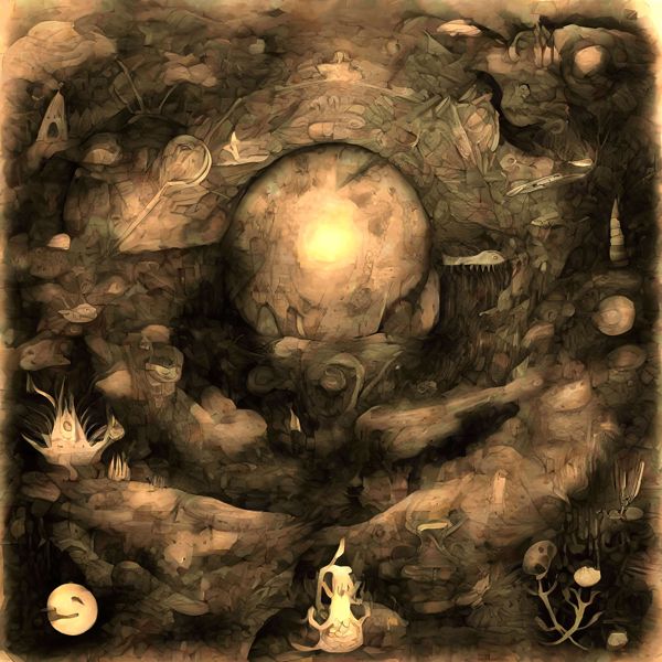 これらの画像は通常の AI アートとはちがう独自の方法を使って作っています. AI アートは AI にプロンプト (または呪文) とよばれる英語の記述をあたえて作画した画像ですが, Stable Diffusion,DALL・E 2,Midjourney などの AI プログラムによって 2022 年に爆発的に普及しました. AI アートで望む画像を作るために通常は比較的細かい指示を与えます. しかしデイシンではおもに 1〜4 語程度の短いことばや造語を Stable Diffusion XL 1.0 (1024) を使用している OpenArt,NightCafe などのウェブサイトで使用して,そのプログラムがもつ知識をいかして自由に (ジェネラティブに,創発的に) 画像をつくらせています. コントラストの調整等はしていますが,描きなおさせたり加筆したりするようなことはしていません.