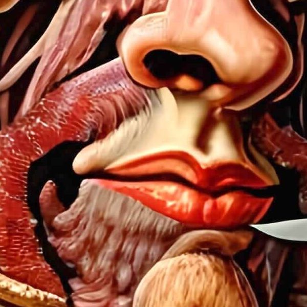 制作者と AI (AI アート作成用のプログラム Stable Diffusion XL 1.0 (1024)) とからなるアートユニット anonymous による画家風のアート画像です.そのプログラムに「Arcimboldo meat」ということば (prompt) をあたえて創造させました. 負のプロンプトとして「vegetables」を指定しています.
