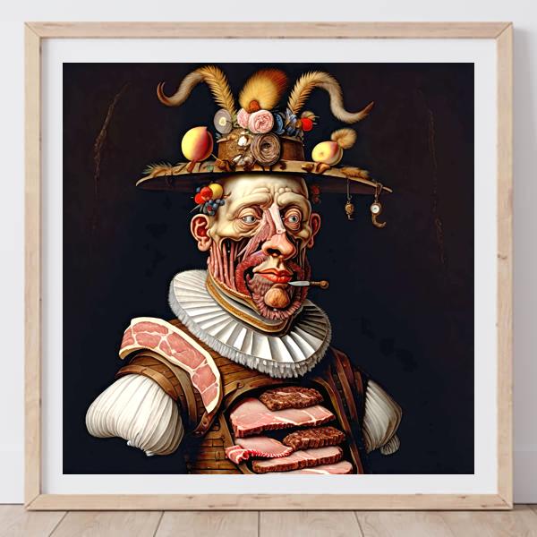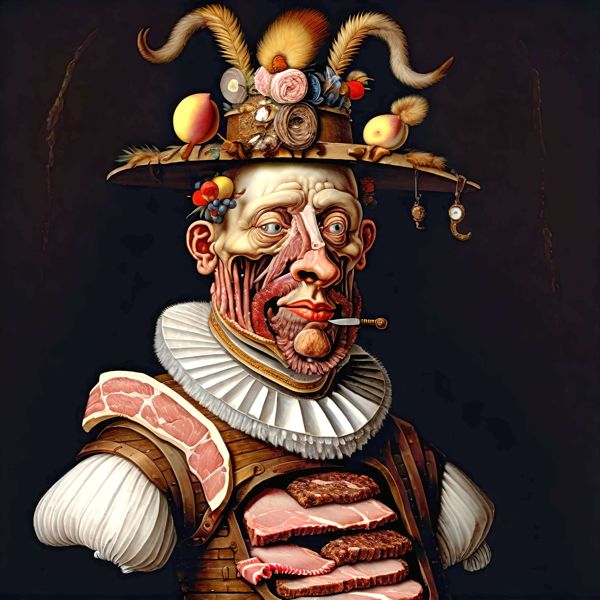 AIアート: 野菜に影響されないアルチンボルド風 「肉」