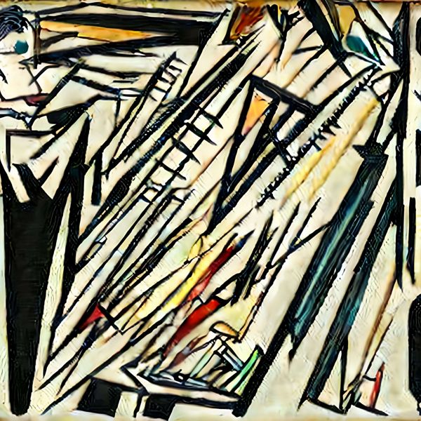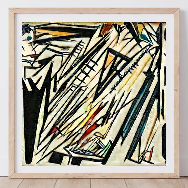 制作者と AI (AI アート作成用のプログラム Stable Diffusion 2.1 (768)) とからなるアートユニット anonymous による画家風のアート画像です.そのプログラムに「Kandinsky」ということば (prompt) をあたえて創造させました. 負のプロンプトとして「Kandinsky Balla」を指定しています.