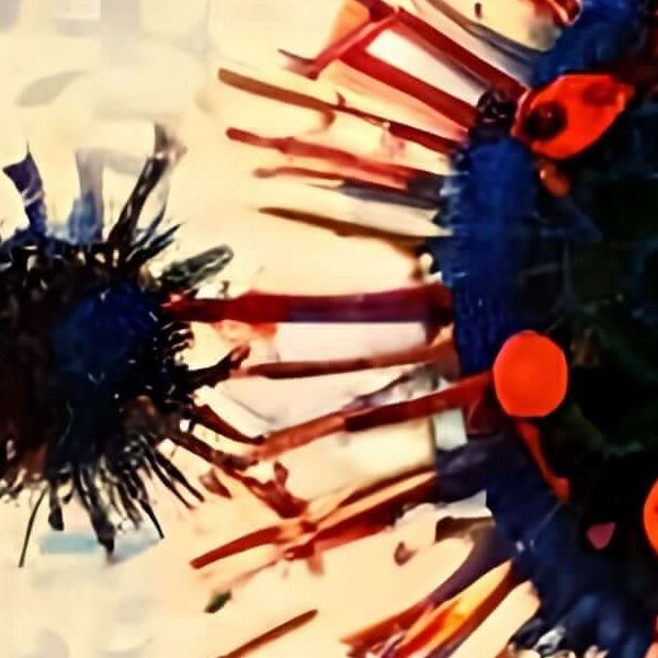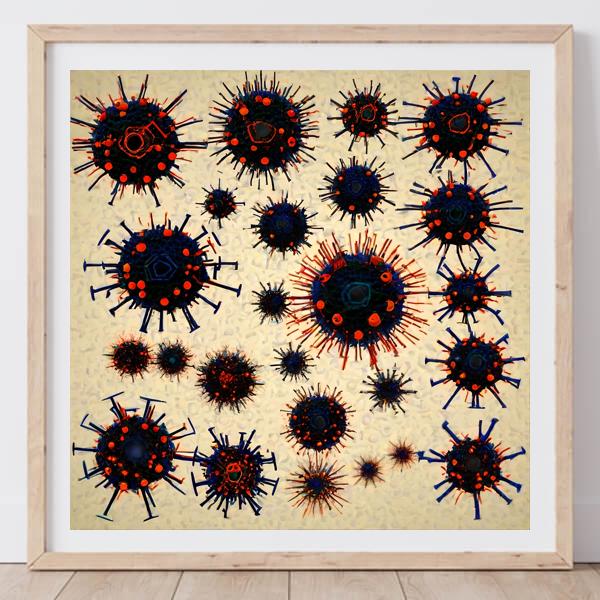 制作者と AI (AI アート作成用のプログラム Stable Diffusion XL 1.0 (1024)) とからなるアートユニット カナブストラクド によるアート画像です.そのプログラムに「Kanabstracd viruses」ということば (prompt) をあたえて創造させました.