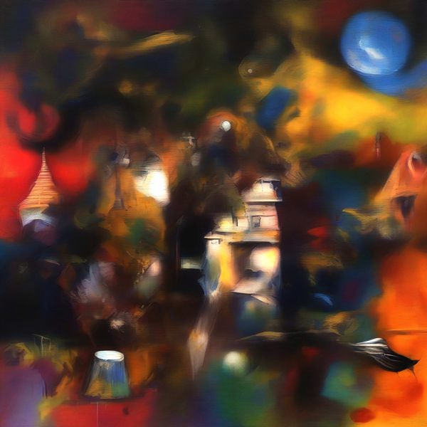 制作者と AI (AI アート作成用のプログラム Stable Diffusion XL 1.0 (1024)) とからなるアートユニット カナブストラクド によるアート画像です.そのプログラムに「Kanabstracd surreal Chagall」ということば (prompt) をあたえて創造させました. 負のプロンプトとして「Chagall mesh」を指定しています.