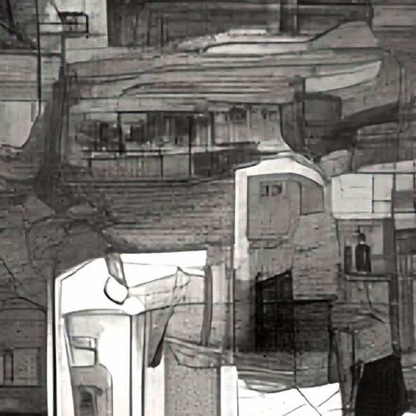 制作者と AI (AI アート作成用のプログラム Stable Diffusion XL 1.0 (1024)) とからなるアートユニット カナブストラクド によるアート画像です.そのプログラムに「Kanabstracd absurdism Leger」ということば (prompt) をあたえて創造させました. 負のプロンプトとして「Leger checker」を指定しています.