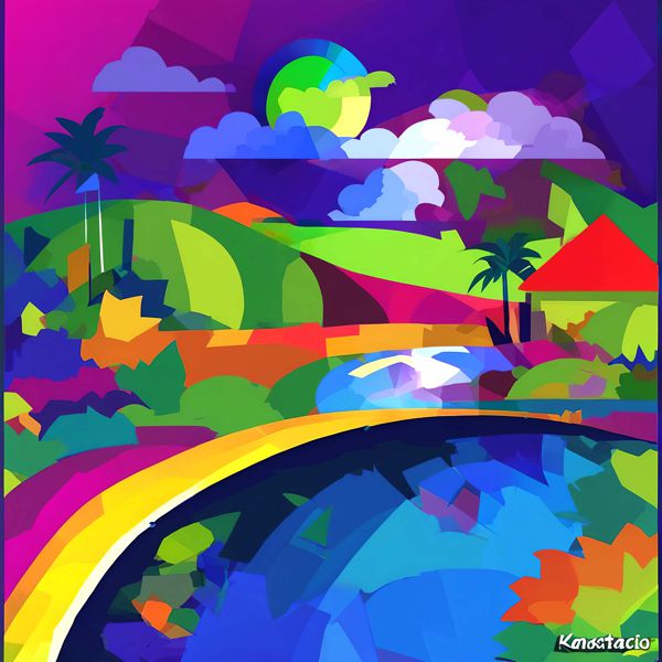 制作者と AI (AI アート作成用のプログラム Stable Diffusion XL 1.0 (1024)) とからなるアートユニット カナブストラクド によるアート画像です.そのプログラムに「Kanabstracd surrealism Gauguin」ということば (prompt) をあたえて創造させました. 負のプロンプトとして「surrealism Gauguin knots」を指定しています.