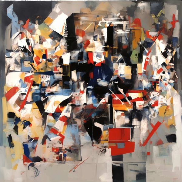 制作者と AI (AI アート作成用のプログラム Stable Diffusion XL 1.0 (1024)) とからなるアートユニット カナブストラクド によるアート画像です.そのプログラムに「Kanabstracd absurdism Albert_Gleizes」ということば (prompt) をあたえて創造させました. 負のプロンプトとして「Albert_Gleizes knots」を指定しています.