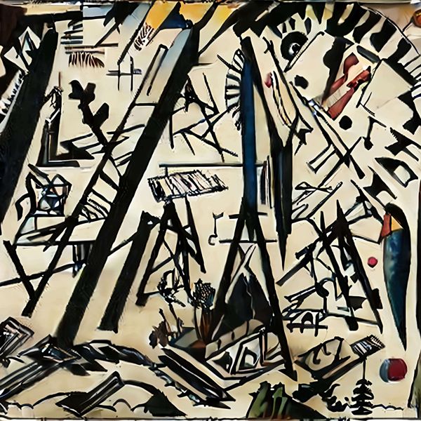 制作者と AI (AI アート作成用のプログラム Stable Diffusion 2.1 (768)) とからなるアートユニット anonymous による画家風のアート画像です.そのプログラムに「Kandinsky」ということば (prompt) をあたえて創造させました. 負のプロンプトとして「Kandinsky Balla」を指定しています.