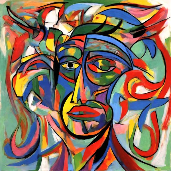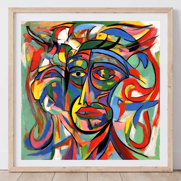 AI Artwork: Kanabstracd “By Picasso-esque … without Gray and Cubisc”