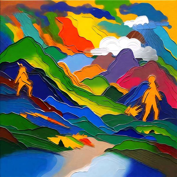 制作者と AI (AI アート作成用のプログラム Stable Diffusion XL 1.0 (1024)) とからなるアートユニット カナブストラクド によるアート画像です.そのプログラムに「Kanabstracd Friedrich」ということば (prompt) をあたえて創造させました. 負のプロンプトとして「checker」を指定しています.