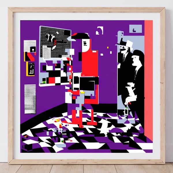 制作者と AI (AI アート作成用のプログラム Stable Diffusion XL 1.0 (1024)) とからなるアートユニット カナブストラクド によるアート画像です.そのプログラムに「Kanabstracd absurdism Picasso」ということば (prompt) をあたえて創造させました. 負のプロンプトとして「Picasso bows」を指定しています.