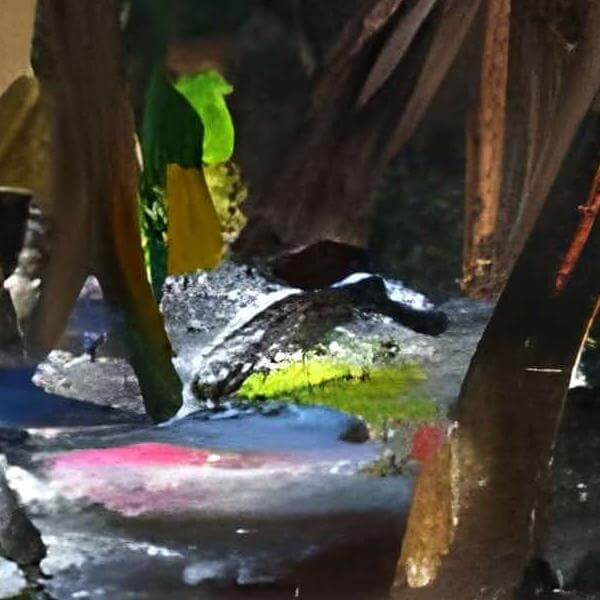 これらの画像は通常の AI アートとはちがう独自の方法を使って作っています. AI アートは AI にプロンプト (または呪文) とよばれる英語の記述をあたえて作画した画像ですが, Stable Diffusion,DALL・E 2,Midjourney などの AI プログラムによって 2022 年に爆発的に普及しました. AI アートで望む画像を作るために通常は比較的細かい指示を与えます. しかしデイシンではおもに 1〜4 語程度の短いことばや造語を Stable Diffusion 2.1 (768) を使用している OpenArt,NightCafe などのウェブサイトで使用して,そのプログラムがもつ知識をいかして自由に (ジェネラティブに,創発的に) 画像をつくらせています. コントラストの調整等はしていますが,描きなおさせたり加筆したりするようなことはしていません.