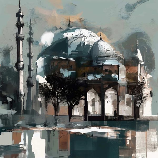 This image was created by ‘Kanabstracd,’ an art unit formed by the creator and the AI (Stable Diffusion XL 1.0 (1024), a program for creating AI artworks). I gave the program the word ‘Kanabstracd surrealism mosque’ as a prompt and let it create. Also “surrealism mosque knots ” was used as the negative prompt.